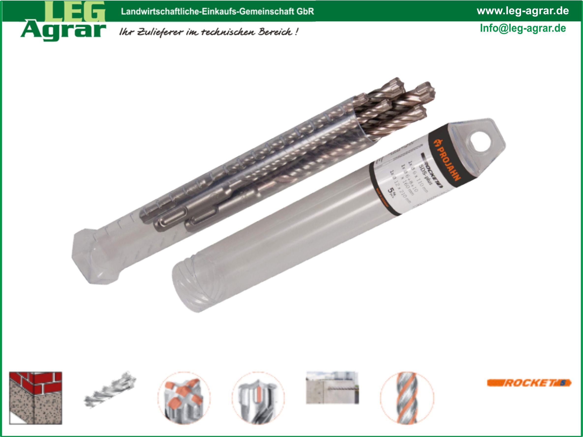 ROCKET 5 Hammerbohrer-Set SDS-plus 5-tlg. -Durch seine 5 Crusher ist der Rocket 5 der perfekte Bohrer zum Bearbeiten von armiertem Beton-